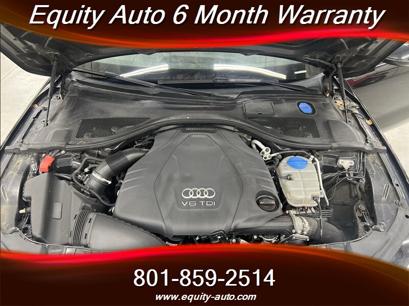 This A7 pairs Audi’s 3.0L TDI turbocharged V6 diesel (240 hp, 428 lb-ft) with quattro permanent all-wheel drive and an automatic transmission, delivering strong low-end torque and composed highway cruising.