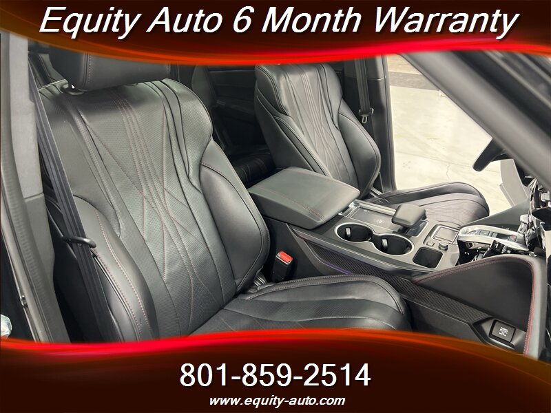 Inside, the Acura MDX Type S is designed for comfort and convenience. The Advance Package includes premium leather upholstery, heated and ventilated front seats, and a spacious three-row seating configuration that accommodates up to seven passengers. The driver and front passenger enjoy 16-way power-adjustable seats with lumbar support, ensuring a customized fit for all journeys.