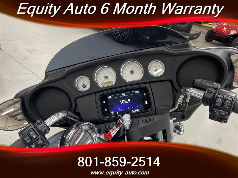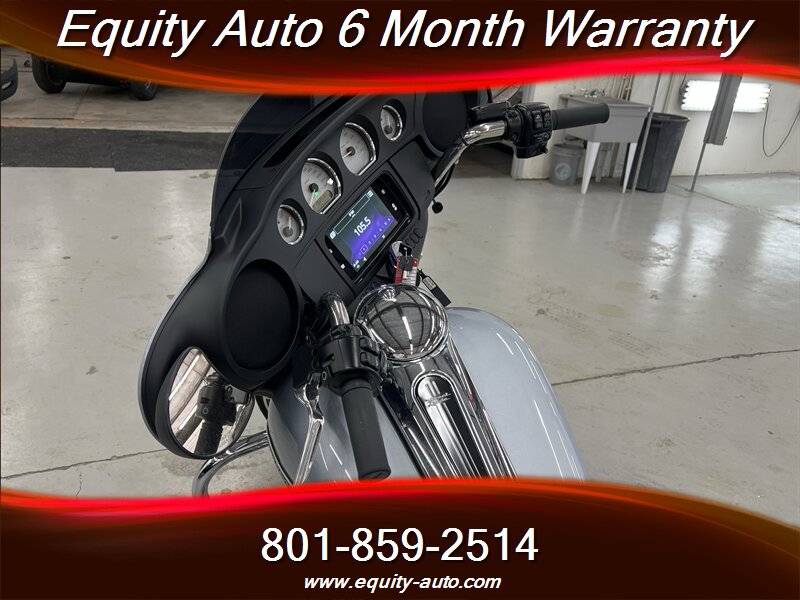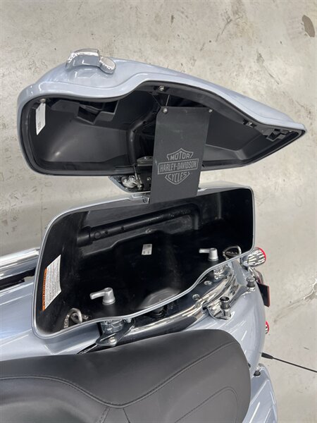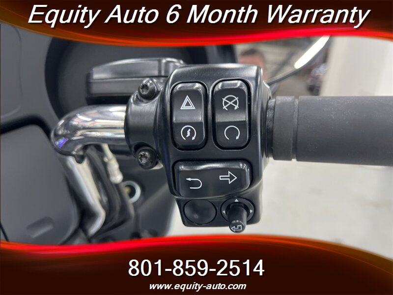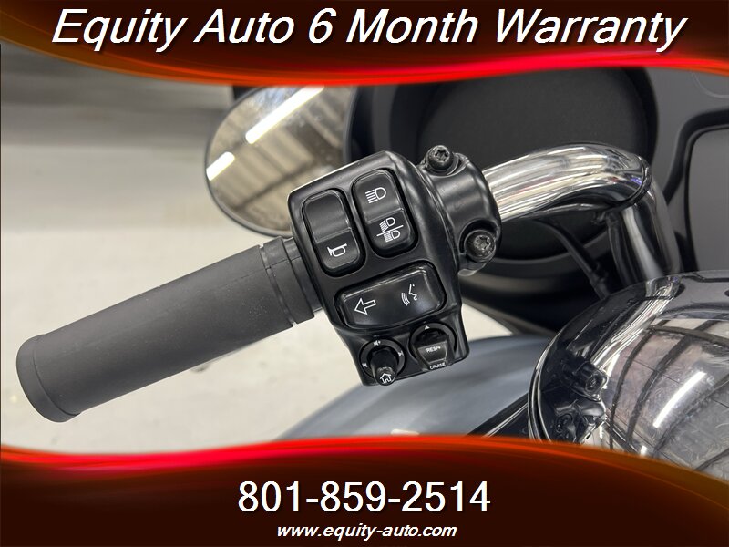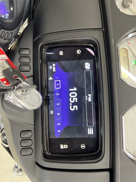 Technology and connectivity are centered on Harley-Davidson’s Boom! Box infotainment system mounted in the fairing. The system offers a color display, AM/FM audio, Bluetooth phone and audio connectivity, and integrated navigation/route guidance features when configured with maps or paired devices. Handlebar controls and audio-system controls are integrated for convenience, and a combined analog/digital instrument cluster provides ride information, odometer, fuel indication, and system status messages.